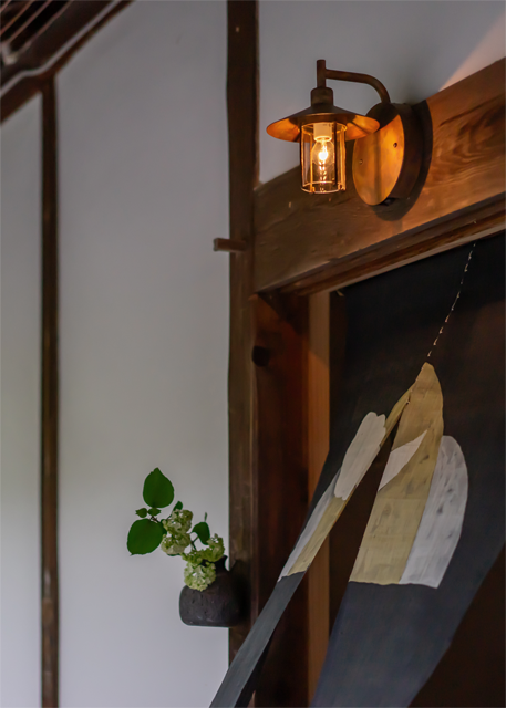ガスランプをイメージしたGlassシリーズの人感センサー付き壁付け照明です。セードを深くしたデザインで、銅の質感とガラスの透明感がさりげなく目を引きます。人感センサー付きタイプの中では小ぶりなサイズで、玄関周りをすっきりコンパクトにまとめたい方におすすめです。