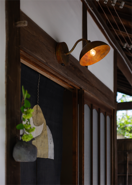 ハンマーのたたき跡から心地よいリズムを感じ、点灯時にはシェード内部に銅ならではの美しい表情が表れます。